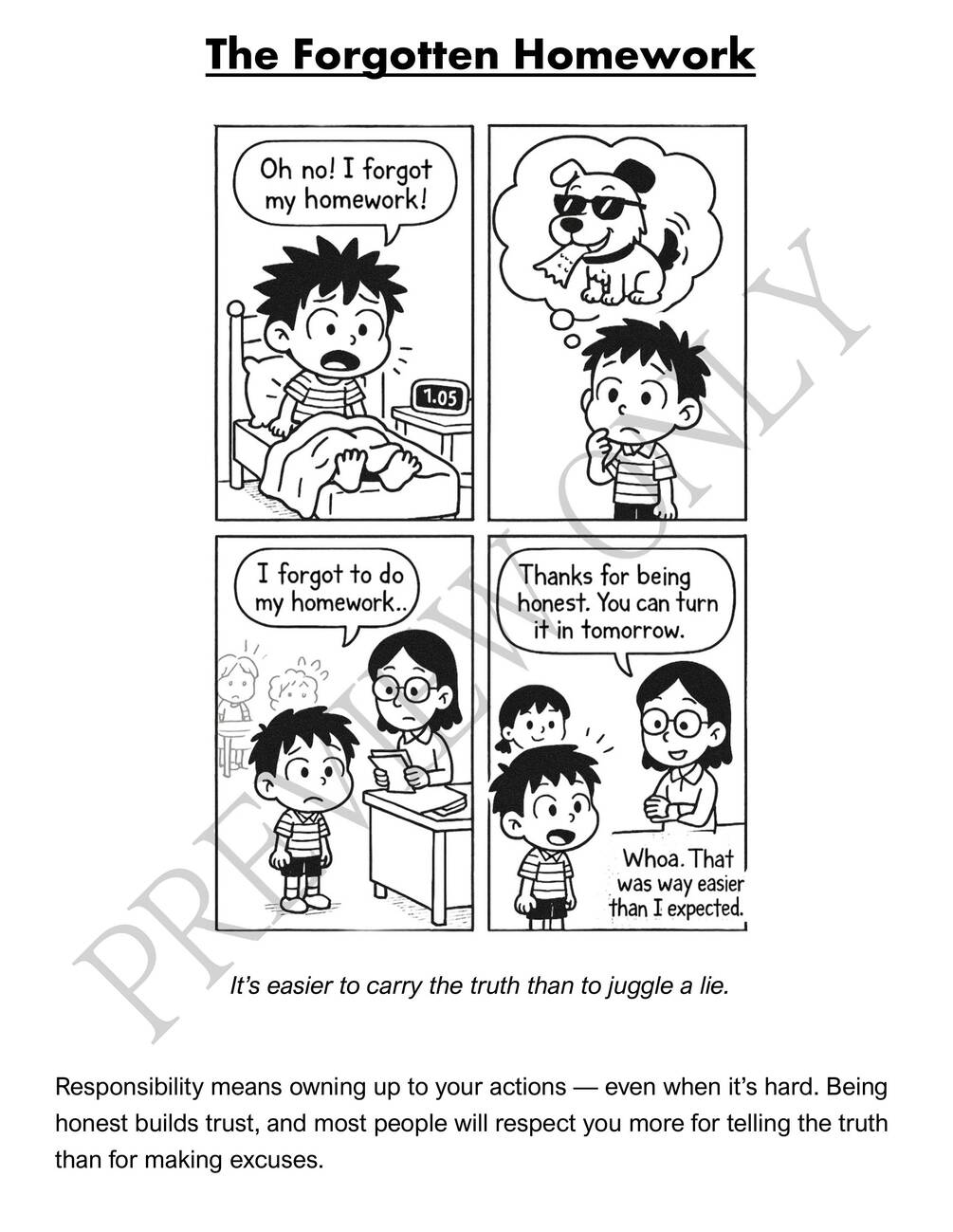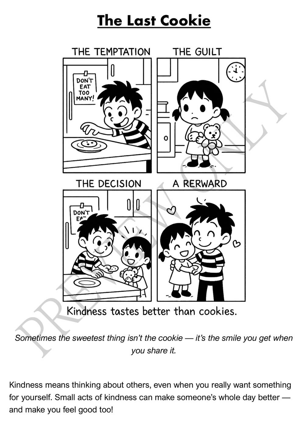 Instant Download - PDF Format (31 Pages) Get immediate access to all 31 comics plus moral messages and educational notes in a beautifully formatted 31-page PDF that's easy to read on any device or print at home for coloring fun!